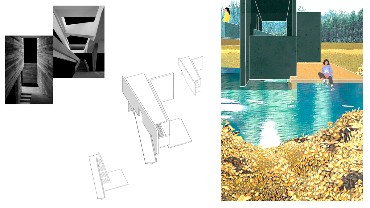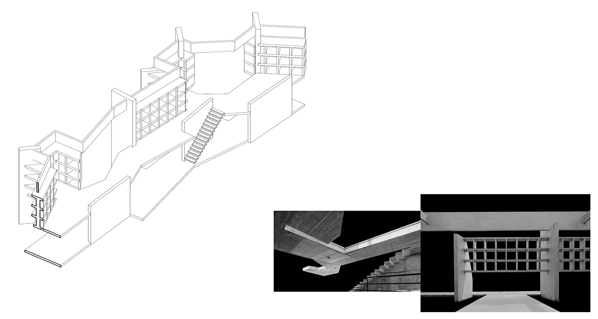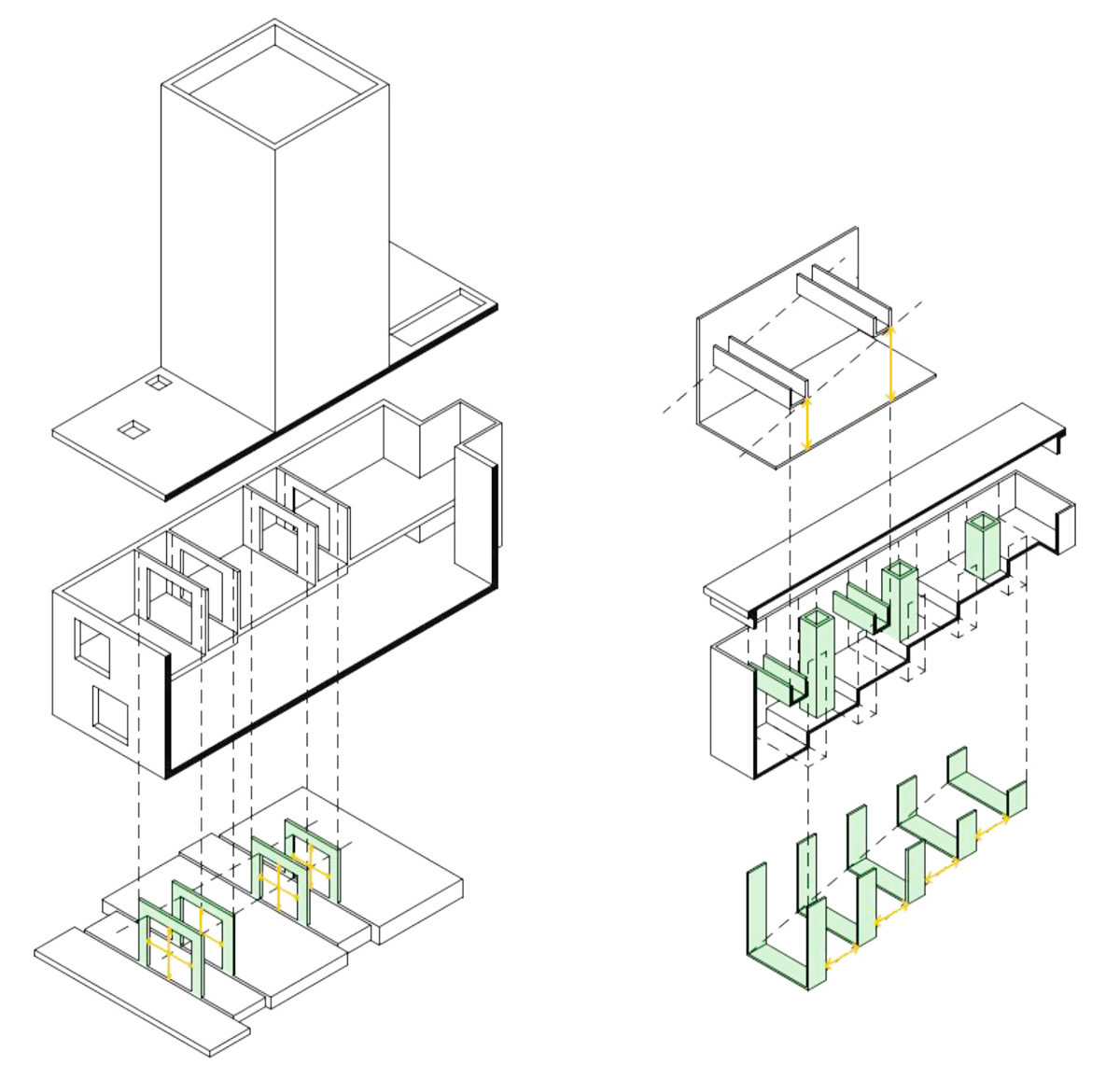 La construcción del material de proyecto se lleva a cabo mediante estudios de caso entrecruzando tres variables de investigación: lógica formal constructiva, patrones de organización y paisajes enfocados. Estos ejercicios forman en el estudiante intuiciones aprendidas como herramientas operativas que, mediante el redibujo, el recorte y la construcción de hipótesis, comprueban y cuestionan los mecanismos proyectuales de las obras estudiadas para ser adaptados, redispuestos y transformados.